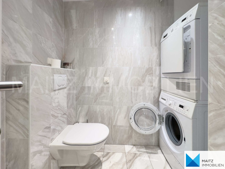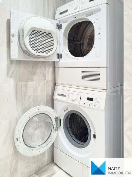 Waschmaschine und Trockner verbleiben im Badezimmer und können selbstverständlich genutzt werden.