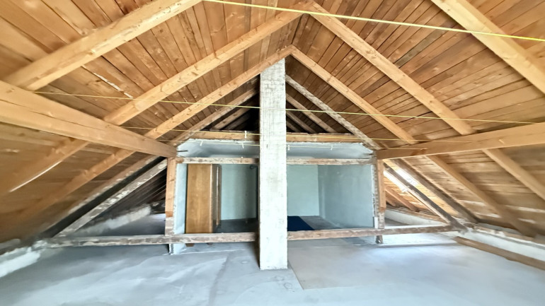 Der Dachboden hat großes Ausbaupotential auf insgesamt 200 m2 Gesamtfläche. Es handelt sich um einen Satteldach, optimal zum Ausbauen als zusätzlicher Wohnbereich mit mindestens drei großen Zimmern.