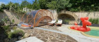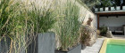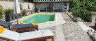Der Garten mit Poolanlage ist bewusst als Ruhe- und Erholungszone gestaltet und fügt sich harmonisch in die natürliche Topografie ein. Die Kombination aus mediterranen Elementen, Naturstein und üppiger Bepflanzung schafft ein Ambiente von zeitloser Eleganz.
