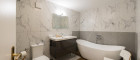 Die Bäder sind hochwertig ausgeführt und verbinden zeitloses Design mit funktionalem Komfort. Materialien, Farben und Lichtführung schaffen eine entspannte, beinahe spa-ähnliche Atmosphäre.