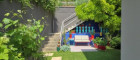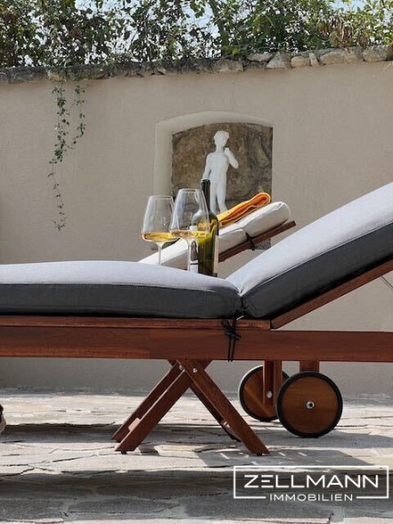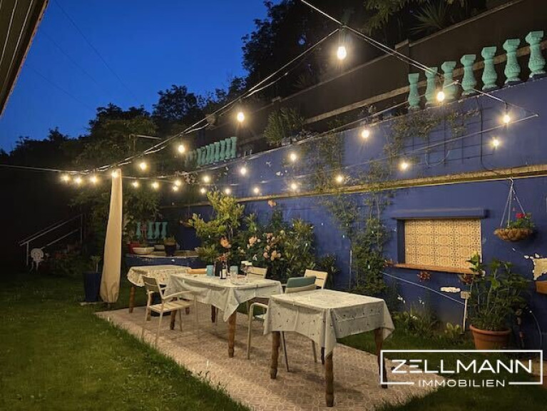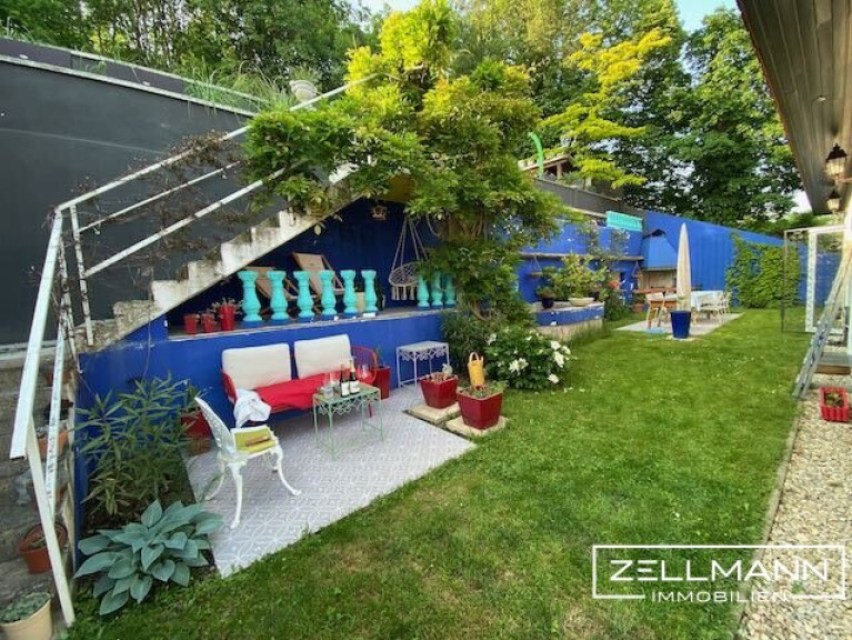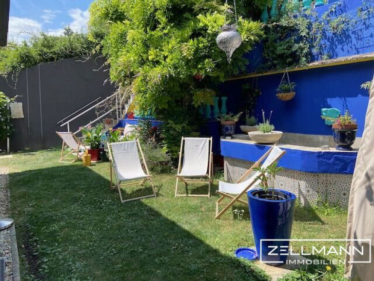 Der Garten ist mehr als nur Außenfläche – er ist ein gestalteter Lebensraum. Unterschiedliche Terrassenebenen, liebevoll inszenierte Rückzugsorte und eine harmonische Bepflanzung schaffen ein Ambiente, das an mediterrane Rückzugsorte erinnert.