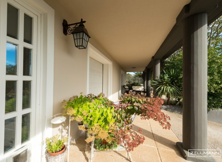 Bereits die Zufahrt unterstreicht den repräsentativen Charakter dieser Liegenschaft. Eine elegante, großzügig angelegte Auffahrt mit automatischem Einfahrtstor führt diskret und sicher auf das Grundstück und gewährleistet ein Höchstmaß an Privatsphäre.