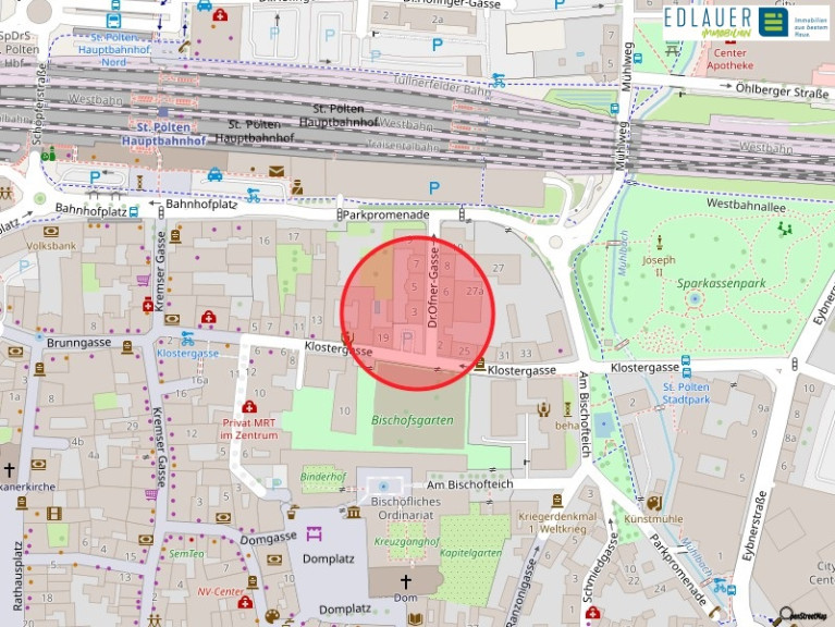 Das Wohnhaus befindet sich im Zentrum von St. Pölten. Besonders erwähnenswert ist die ausgezeichnete Verkehrsanbindung. Sowohl in öffentlicher als auch privater Hinsicht ist die Wohnung sehr gut gelegen. Diese gute Lage spiegelt sich auch auf den Bereich Infrastruktur und Einkaufsmöglichkeiten wieder. Keine 2 Minuten Gehzeit entfernt befindet sich der St. Pöltner Hauptbahnhof und auch die Innenstadt befindet sich nur wenige Meter entfernt.