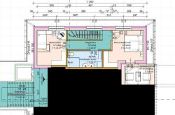 Die Wohnung hat im Obergeschoß 2 Schlafzimmer und Bad mit WC und ein kleiner Balkon beim Elternschlafzimmer.