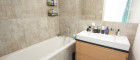 - elegantes Badezimmer mit Badewanne und Doppelwaschbecken