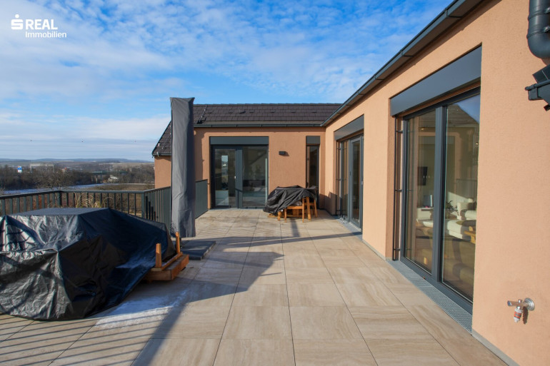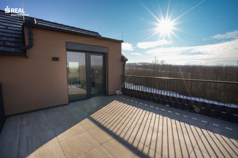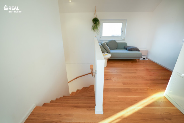 Ein besonderes Highlight sind die beiden Dachterrassen mit insgesamt rund 94 m² Freifläche. Der freie Blick ins angrenzende Grünland ist dauerhaft gesichert (Brunnenschutzgebiet) und bietet Ruhe, Privatsphäre sowie langfristige Wertbeständigkeit.