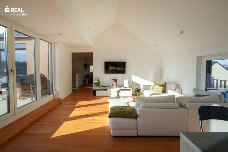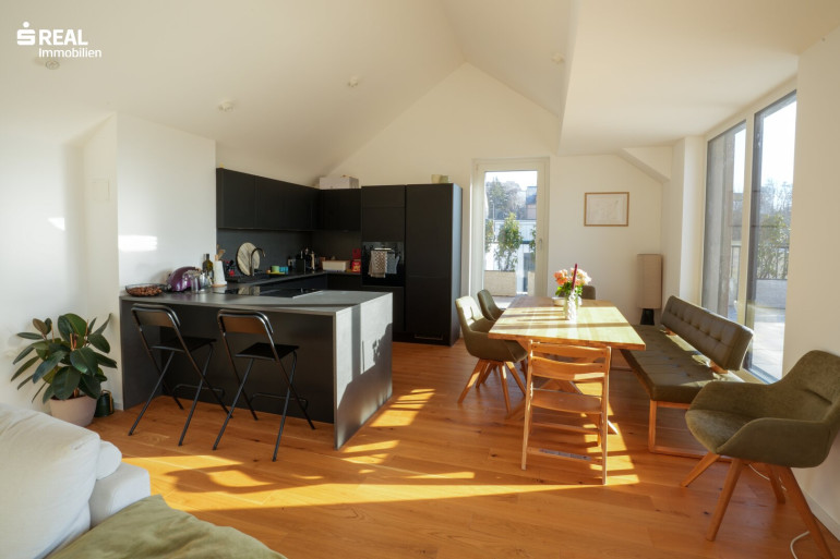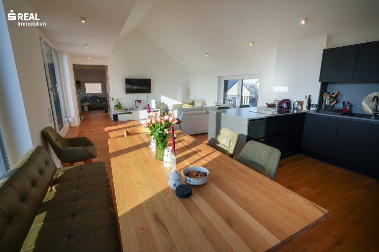 - offenes, lichtdurchflutetes Wohn-Esszimmer mit modernen Einbauküche (hochwertige Geräte) und direktem Zugang zur südseitig ausgerichteten Haupt-Dachterrasse