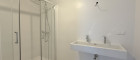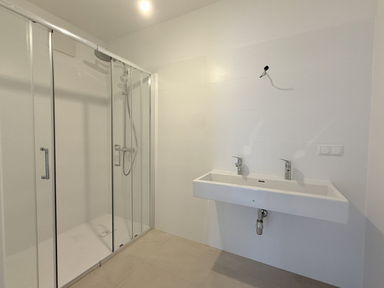 - Badezimmer mit Dusche und Doppelhandwaschbecken