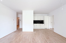 Zum Verkauf gelangt diese perfekt geschnittene Dreizimmerwohnung mit westseitigem Balkon im ersten Liftstock eines sehr geschmackvollen Neubauhauses (Fertigstellung März 2026) in Grün-Ruhelage.