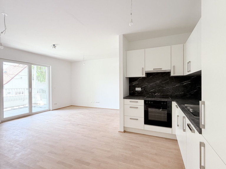 - Wohnküche mit hochwertig ausgestatteter Küche und Zugang zum Balkon