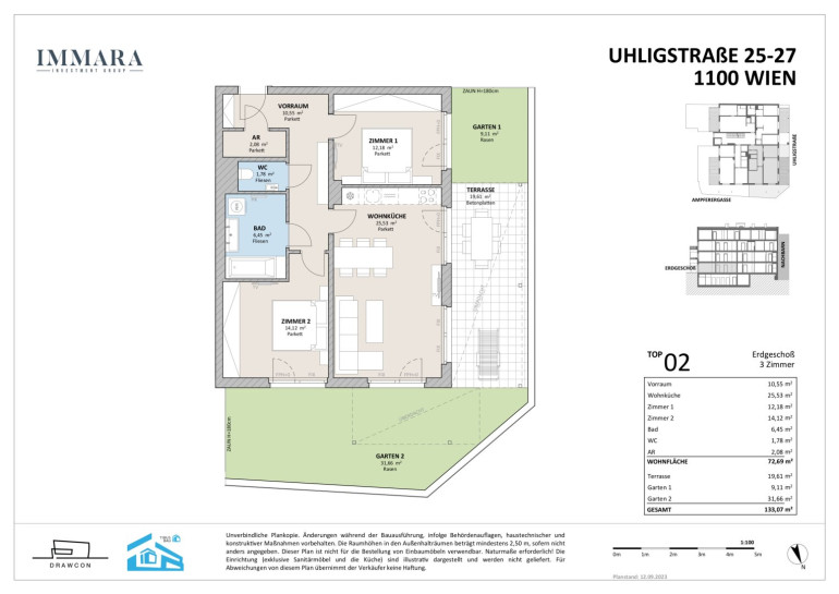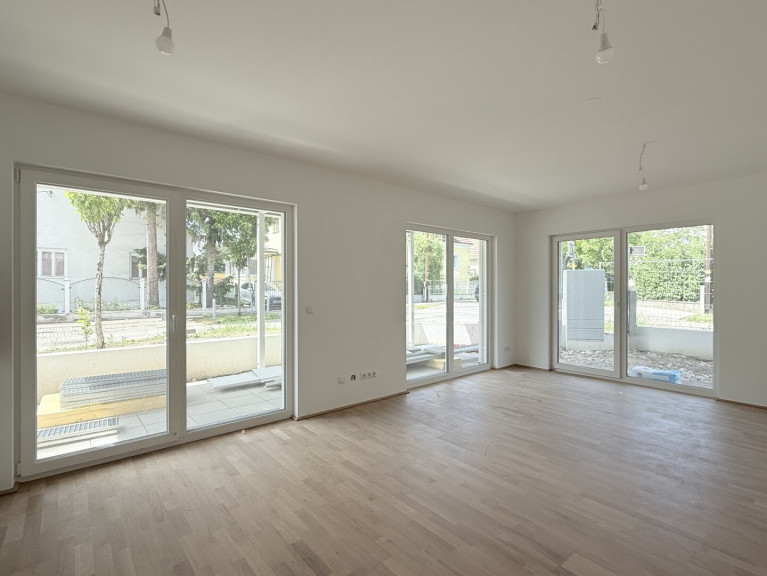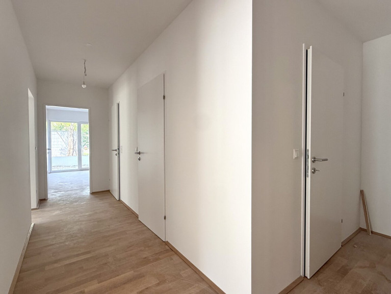 Bei der gegenständlichen Wohnung handelt es sich um eine perfekt geschnittene Dreizimmerwohnung mit Garten und Terrasse im Erdgeschoss eines sehr geschmackvollen Neubauhauses (Fertigstellung November 2025) in Grün-Ruhelage.