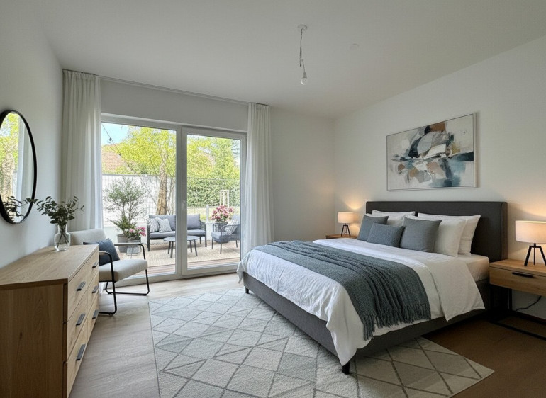 - Schlafzimmer mit Zugang zum Garten