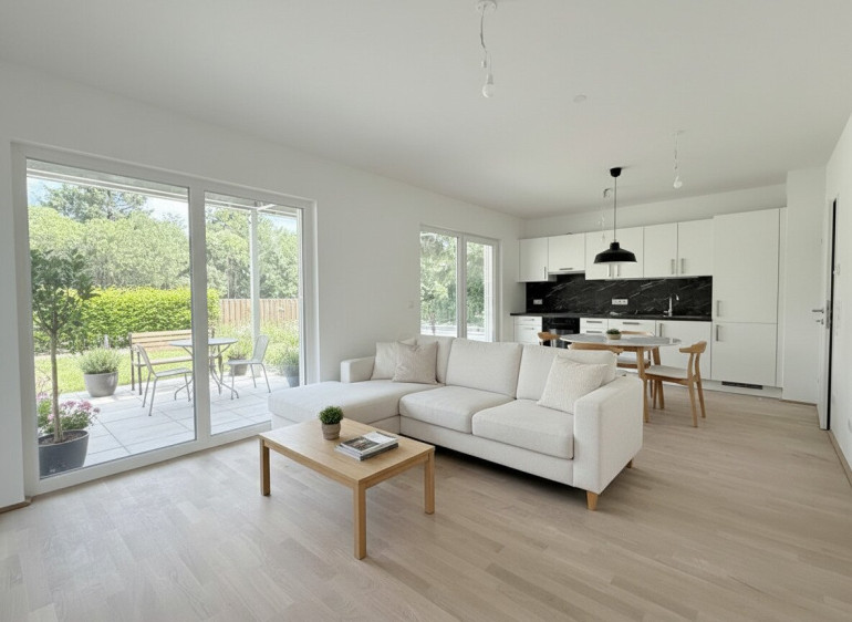 Zum Verkauf gelangt diese perfekt geschnittene Dreizimmerwohnung mit Garten und Terrasse im Erdgeschoss eines sehr geschmackvollen Neubauhauses (Fertigstellung November 2025) in Grün-Ruhelage. Diese hochwertig ausgestattete Wohnung verfügt über einen ca. 75m2 großen Garten (zzgl. 18 m2 Terrasse), welcher von allen drei Zimmern zugänglich ist.