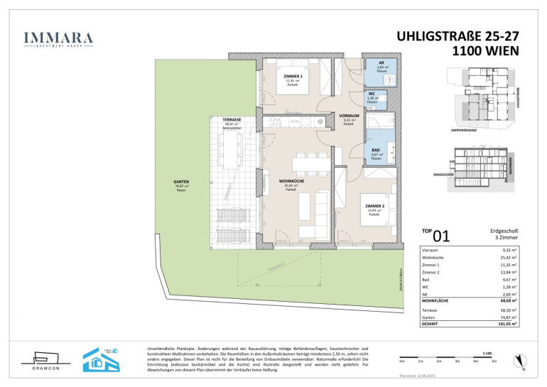 Beim angegebenen Kaufpreis handelt es sich um einen Nettopreis für Anleger, für Selbstnutzer kommen 11 % Umsatzsteuer hinzu.