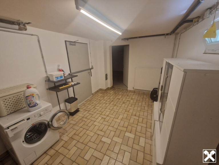 Massive Stiegenanlagen führen in das Kellergeschoss, hier befinden sich neben klassischen Kellerräumlichkeiten wie dem Heiz- und Technikraum, eine Waschküche, ein beheiztes Zimmer (Wohnkeller) und eine Garage, welche derzeit als Abstellraum genutzt wird.