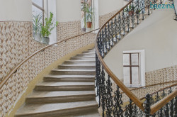 - Brightly designed entrance hall with a charming stained-glass window facing the courtyard and access to the balcony.