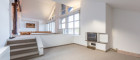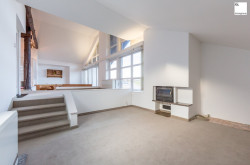 Die Dachgeschosswohnung in split-level-Bauweise verfügt über einen großzügigen offenen Grundriss mit großen Fenstern und hohen Decken.
