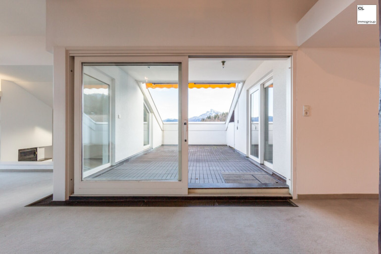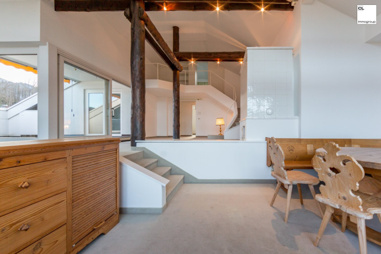 Erleben Sie Wohnen vom Feinsten mit dieser besonderen Dachgeschosswohnung in Mondsee, Österreich. Diese Wohnung bietet einen atemberaubenden Blick auf den Mondsee und auf die umliegenden Berge. In nur wenigen Minuten ist man im charmanten Zentrum von Mondsee.