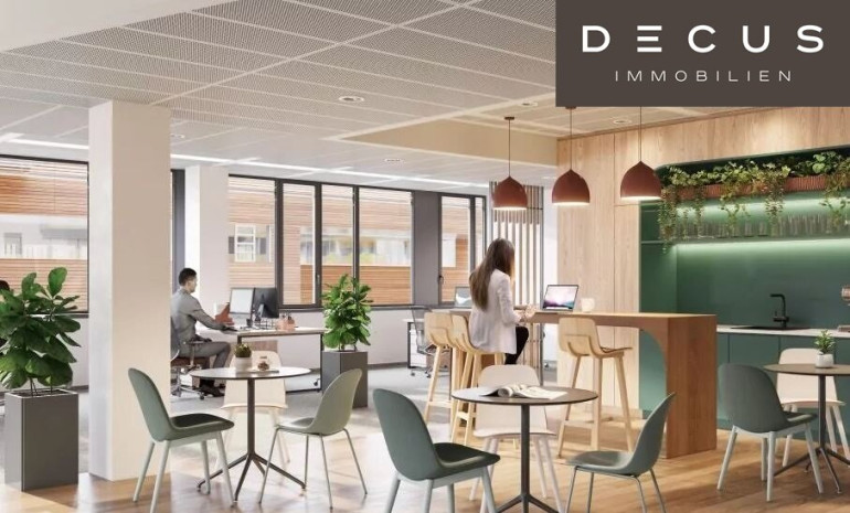 Zum grünen Innenhof orientierte Außenflächen erlauben zudem erholsame Arbeitspausen und sozialen Austausch an der frischen Luft.