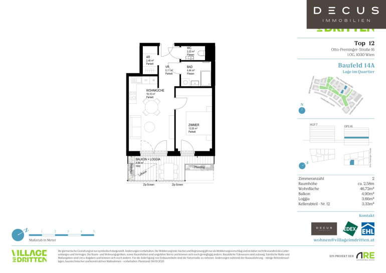 Nähere Informationen zu den Wohnungen auch online unter: https://villageimdritten.at/wohnungsfinder/