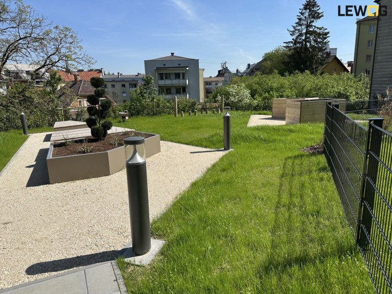 Die angebotene bezugsfertige Wohnung ist eine Gartenwohnung mit 79 m² Wohnfläche und ca. 71 m² Eigengarten und unverbaubarem Ausblick über Urfahr.