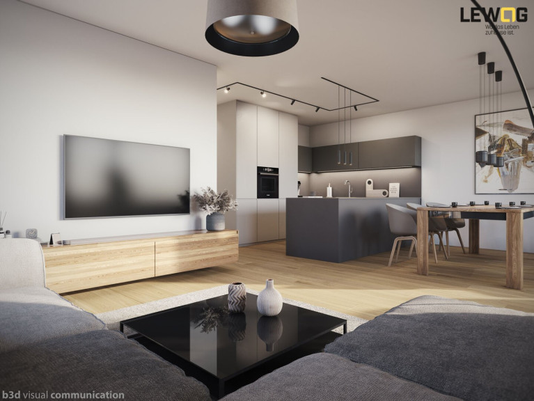 - Modern & komfortabel: zwei Tiefgaragenstellplätze pro Wohnung, E-Mobilität, Fernwärme und Fußbodenheizung.