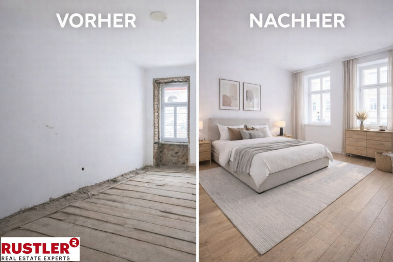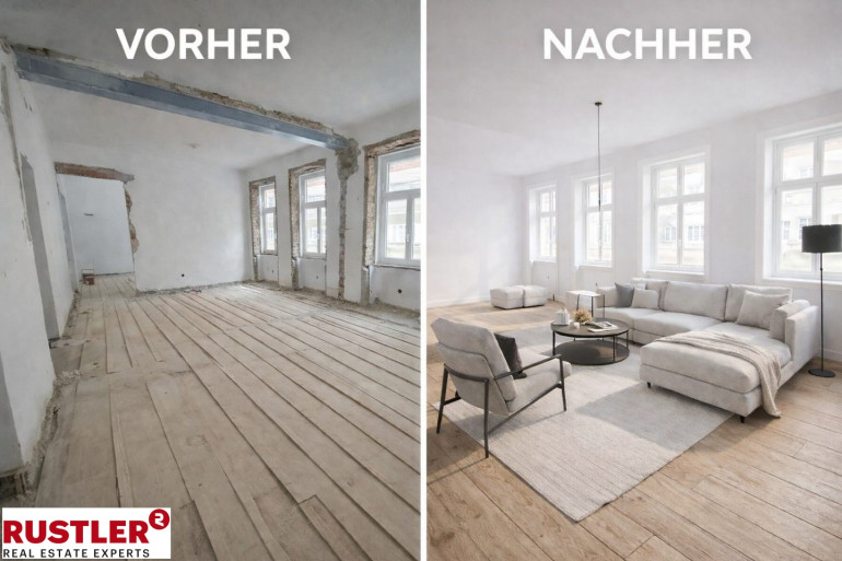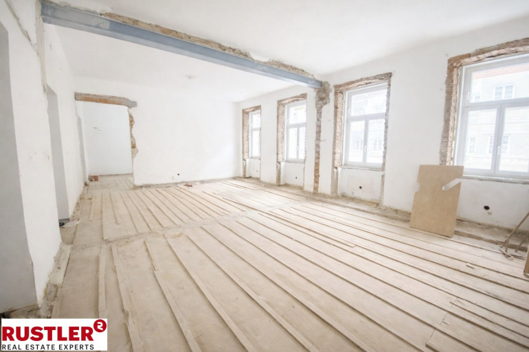 Die Einheit ist wahlweise im entkernten Rohzustand oder nach Sanierung erhältlich.