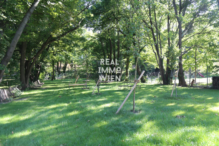 • Großzügige Freifläche mit altem Baumbestand, Spielplatz und Sitzgelegenheiten