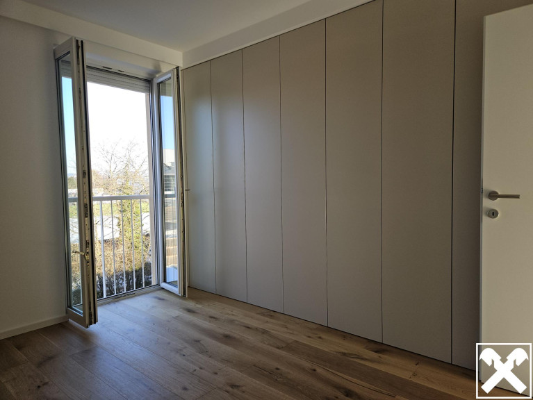 Die Wohnung wurde 2025 im Inneren komplett saniert: hochwertige Böden, modernes Badezimmer, neuer Terrassenbelag, moderne Tischler-Einbauschränke.