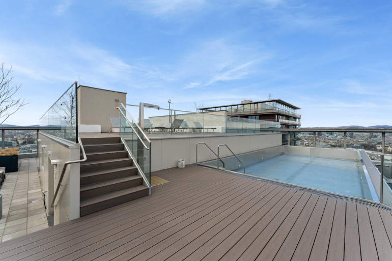 Parkett, Fliesen, Fußbodenheizung, Einbauküche, Personenaufzug, Swimmingpool