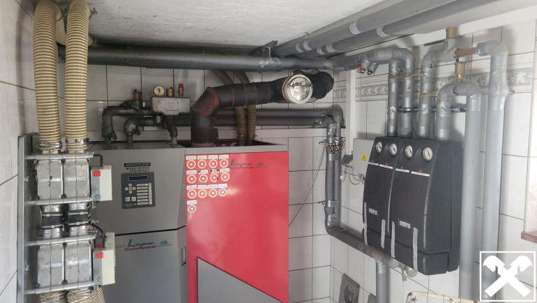 - Kellergeschoss: Heizraum, Pelletslagerraum, Waschraum, Keller
