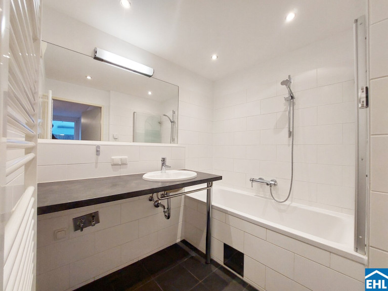 - Badezimmer mit Wanne und Waschmaschinenanschluss, separates WC