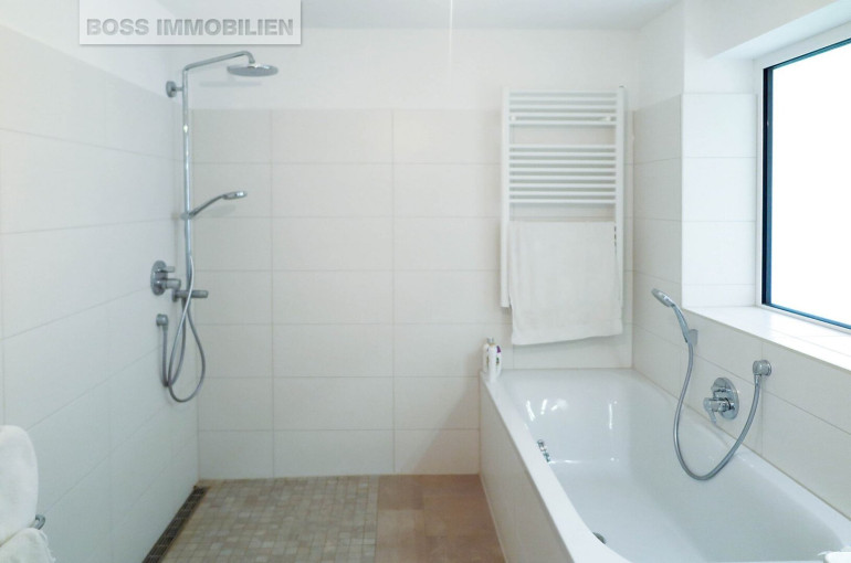 Duschen oder lieber Baden? Das Bad ist für beide Vorlieben ausgestattet. Durch das Fenster in diesem Raum genießen Sie hier ebenso Tageslicht. Weitere Pluspunkte sind das separate WC, ein großer Abstellraum und der zugehörige Parteienkeller.