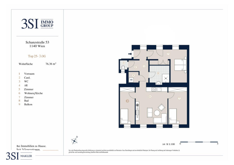 Der guten Ordnung halber halten wir fest, dass, sofern im Angebot nicht anders vermerkt, bei erfolgreichem Abschlussfall eine Provision anfällt, die den in der Immobilienmaklerverordnung BGBI. 262 und 297/1996 festgelegten Sätzen entspricht – das sind 3 % des Kaufpreises zzgl. 20 % USt. Diese Provisionspflicht besteht auch dann, wenn Sie die Ihnen überlassenen Informationen an Dritte weitergeben. Letztlich weisen wir darauf hin, dass wir als Doppelmakler tätig sind und ein familiäres/wirtschaftliches Naheverhältnis zwischen der 3SI Makler GmbH und der Verkäuferin besteht.