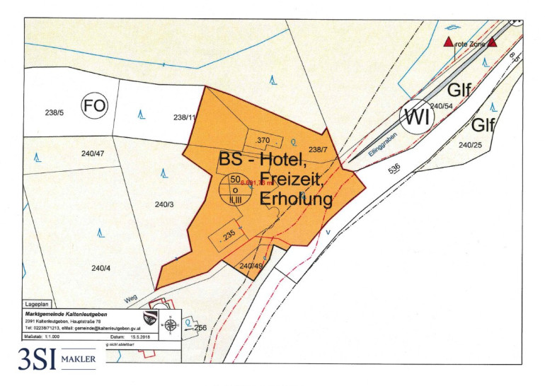Zum Verkauf steht ein außergewöhnliches Entwicklungsgrundstück in idyllischer Lage von Kaltenleutgeben, im grünen Ellinggraben. Das Gesamtgrundstück umfasst 12.884 m², wovon 7.153 m² als Bauland gewidmet sind. Die Widmung erlaubt eine Nutzung für Hotel, Freizeit und Erholung, wodurch sich vielfältige Projektmöglichkeiten eröffnen.