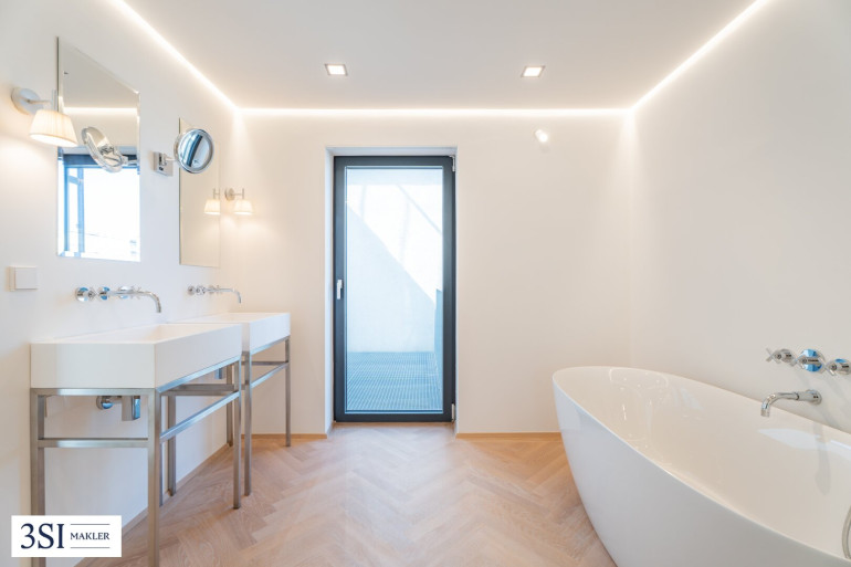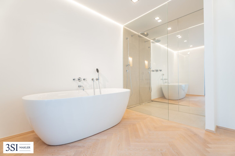 Der neu ausgebaute Dachgeschossbereich präsentiert sich als Erstbezug mit einer hochwertigen Ausstattung, die keine Wünsche offenlässt. Großzügige Raumhöhen, riesige Fensterfronten, stilvolle Details und ein harmonisches Zusammenspiel aus traditionellen Elementen und moderner Architektur verleihen diesem Zuhause eine besondere Atmosphäre.