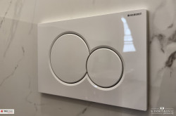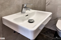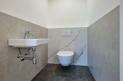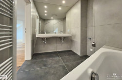 - Sanitär: Fußbodenheizung in Bädern, Wand-WC (Tiefspüler), Handwaschbecken (43x34 cm), Waschtisch (120x46 cm), Chrom-Armaturen, Duschkopf, Mischer, Handbrause.