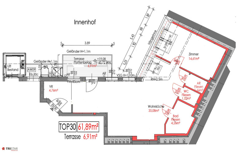 - Top 30: Wohnfläche ca. 61,98 m² + Terrasse ca. 6,91 m², EUR 499.000