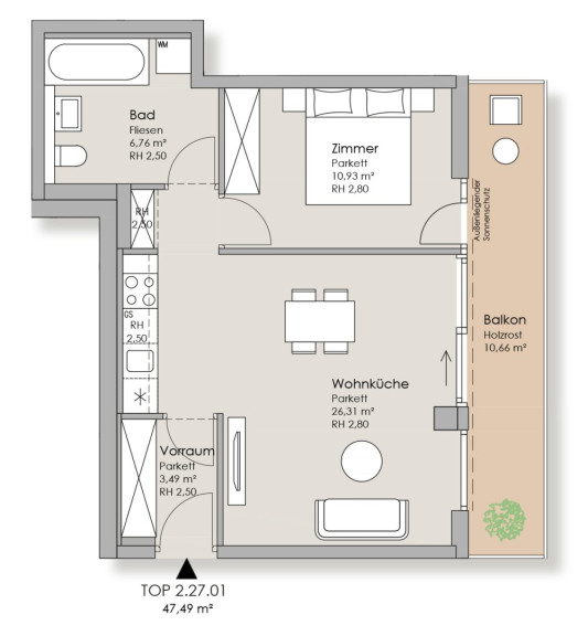 Jeder Wohnung ist ein Einlagerungsraum im selben Stockwerk zugehörig. Ein großzügiger Fahrradraum ist im EG vorhanden.