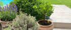 Der Garten ist nahezu uneinsichtig und wird durch den großen Pool dominiert, aber auch Blumen und Gemüse finden genügend Platz. Der Pool ist von einer großzügigen Terrasse eingerahmt und hat natürlich auch eine Außendusche.