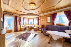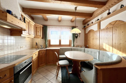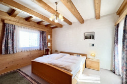 Die Hauptwohneinheit bietet auf Erd- und Dachgeschoss ein großzügiges Wohnzimmer, eine Küche mit Speisekammer, insgesamt vier Schlafzimmer sowie Balkone mit eindrucksvollem Bergblick. Die zweite Wohneinheit im Untergeschoss verfügt über einen separaten Eingang und umfasst Wohn-, Schlafraum sowie Küche mit Essbereich.
