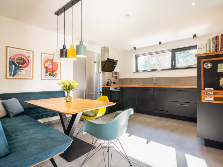 Im Erdgeschoss erwartet Sie ein weitläufiger Wohn- und Essbereich mit Zugang zur Sonnenterrasse und zum liebevoll angelegten Südwestgarten – ideal für entspannte Stunden im Freien. Die moderne Küche mit angrenzendem Essbereich überzeugt durch Funktionalität und Stil. Im Obergeschoß sorgen das elegante Master-Schlafzimmer mit Ankleide, ein großzügiges Badezimmer sowie ein weiteres Zimmer mit Balkon für Rückzugsorte zum Wohlfühlen.