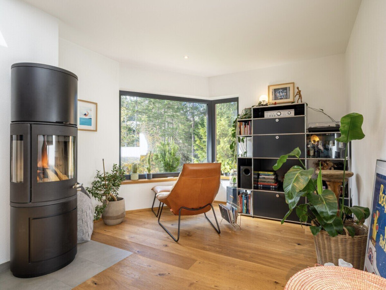 Dank Photovoltaikanlage, Fußbodenheizung, Glasfaseranschluss und E-Ladestation bietet das Haus zudem höchsten Wohnkomfort auf dem neuesten technischen Stand.