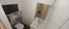 Moderne, großformatige Feinsteinzeug-Fliesen in Bad und WC