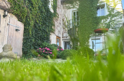 Das großzügige Badezimmer mit freistehender Design-Badewanne und die edle Küche mit hochwertigen Details verbinden historisches Ambiente mit modernem Wohnkomfort. Im Erdgeschoß sind Heizkörper und Verteilleitungen vorhanden; ein Heizkessel kann bei Bedarf ergänzt werden. Der Garten wird derzeit gemeinschaftlich genutzt, kann aber bei Wunsch geteilt werden.