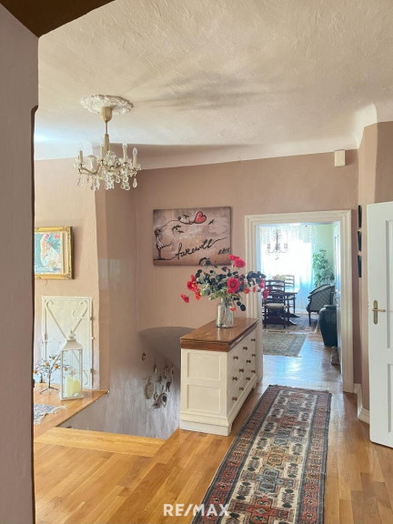Die rund 300 m² Wohnfläche verteilen sich auf zwei Wohneinheiten mit insgesamt 8 Zimmern. Hohe Räume, Fischgrätparkett und liebevoll restaurierte Elemente sorgen für ein außergewöhnliches Wohnambiente. Die Immobilie wurde in den letzten Jahren umfassend saniert – neues Dach, neue Fenster sowie modernisierte Haustechnik – und präsentiert sich in sehr gutem, sofort bezugsfertigem Zustand.