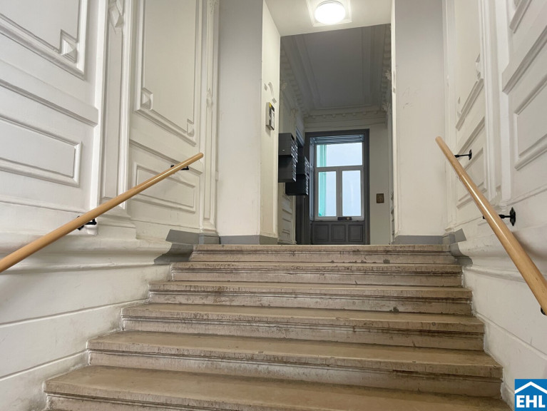 Die durchdachte Raumaufteilung schenkt Alltagsspielraum, Ruhe und Bewegungsfreiheit zugleich. Ein Personenaufzug sorgt für einen angenehmen Zugang zur Wohnung, ein zugeordnetes Kellerabteil ergänzt das Raumangebot. Für den urbanen Alltag besonders praktisch: Ein Fahrradraum, der direkt von der Straße aus befahrbar ist.