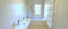 Parkett, Fliesen, Fußbodenheizung, Wohnküche / offene Küche, Personenaufzug, Bad mit Fenster, Badewanne