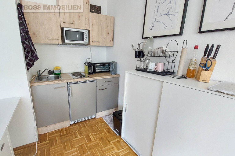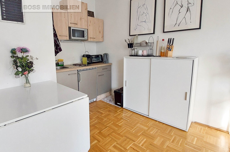Der Wohn-Schlafbereich besticht durch seine praktische Raumaufteilung und lässt sich mit etwas Kreativität zu einer persönlichen Wohlfühloase verwandeln. Angrenzend befindet sich eine gut ausgestattete, neuwertige Küche, die alle wesentlichen Funktionen bietet und bereits im Mietpreis enthalten ist. Die Wohnung wird bis auf die Küche leer übergeben und kann daher ganz nach Ihren Wünschen eingerichtet werden.