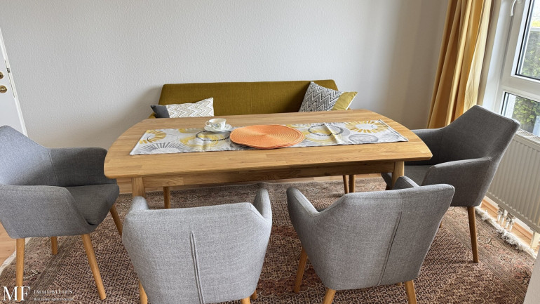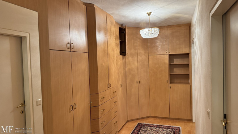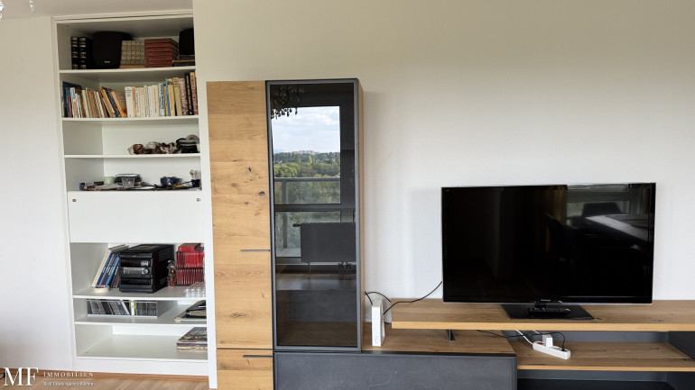 Die moderne Einbauküche ist nicht nur funktional, sondern auch ein wahrer Blickfang. Hier können Sie Ihre Kochkünste entfalten und gleichzeitig den wunderschönen Ausblick genießen. Der offene Wohnbereich führt Sie direkt auf die Loggia, die zum Verweilen und Entspannen einlädt – ein perfekter Ort, um den Feierabend mit einem Glas Wein ausklingen zu lassen oder Gäste zu empfangen.